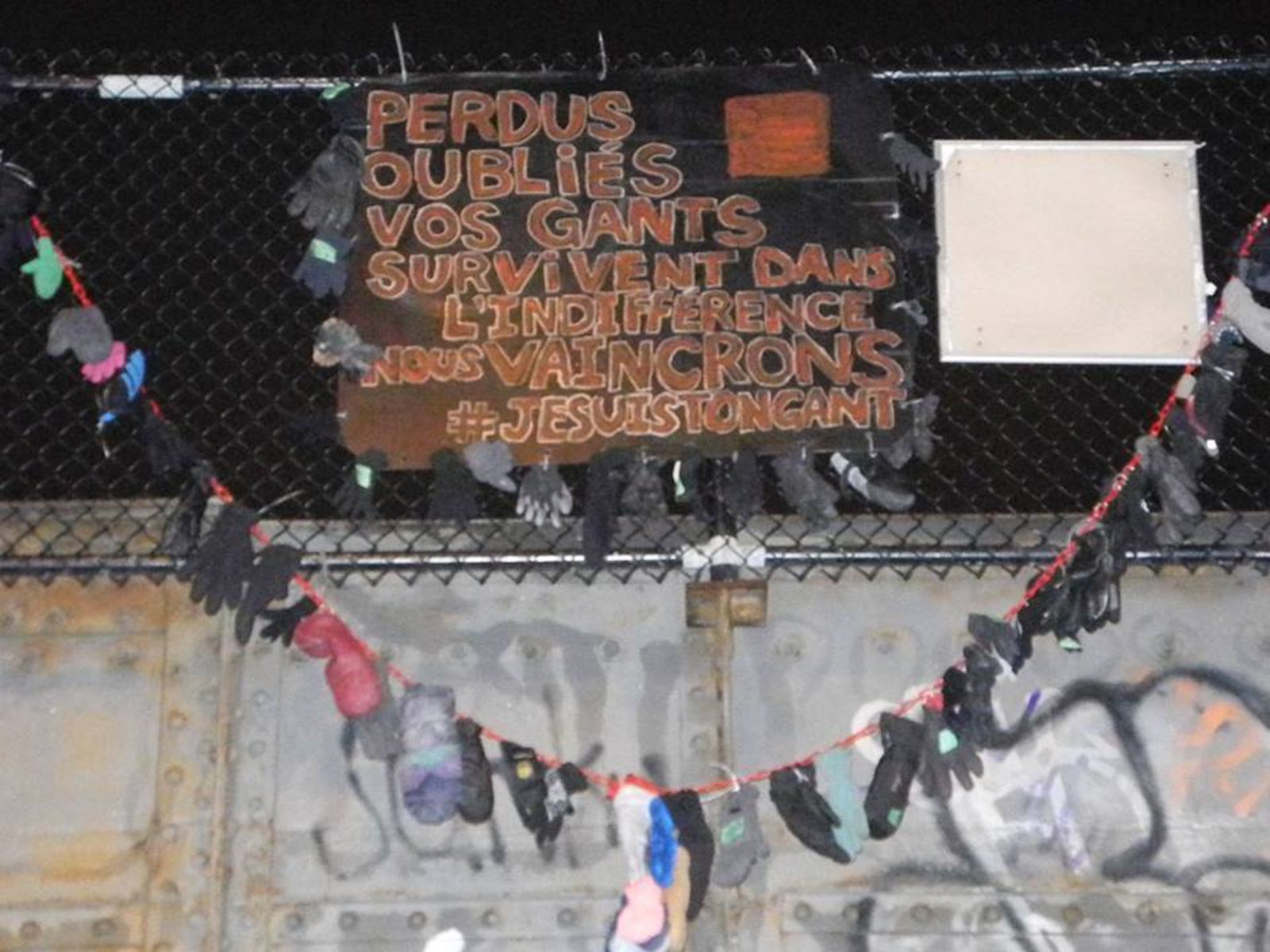Voici une autre installation de gardage originale, initiative de Jean-Lou David et David Caron-Proulx. Tous des gants uniques trouvés qui n'ont jamais su trouver le chemin vers le bac à ordures. Je souhaite longue vie à ce projet et j'espère que ses créateurs inviteront les gens à venir y déposer leurs restants de paire de gants.